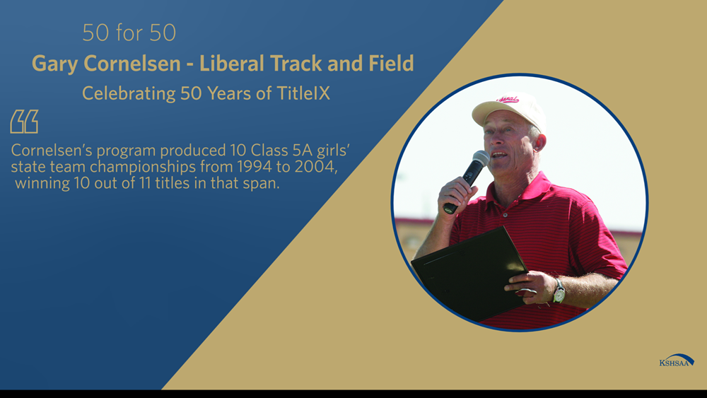 Gary Cornelsen of Liberal HS is one of the most successful multiple sport high school coaches in Kansas history. As one of the best football coaches in Kansas history with a 118-17 record from 1991-2000 & 2003, he led his team to four 5A state titles at Liberal (1992, 1994, 1995, 1997) and multiple runner up finishes in 5A. He was also head coach for the highly successful Liberal track and field program for over 30 years. A program that produced some of the best overall athletes in Kansas history & had multiple players reach the NFL and NBA from either his track or football teams. During that time, Cornelsen led his teams to 28 State Championships…incredible. From 1991-2004, Cornelsen led the boys track and field teams at Liberal High School to 14 consecutive State Championships, while the girls teams won 10 out of 11 State Championships between 1994-2004. The stadium, track, practice fields, and weight room at Liberal High School were renamed as the Gary Cornelsen Sports Complex in 2011.